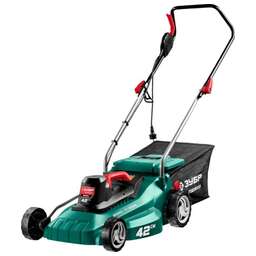 1800 Вт, высота скашивания 5 уровней, ширина скашивания 42 см, скорость вращения ножа до 3200 об./мин, объем травосборника 45 л.