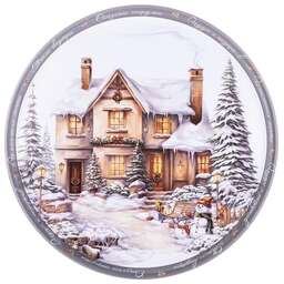 Поднос - это необходимый предмет для организации сервировки стола.<br /> Поднос имеет оптимальную круглую форму диаметром 33 см и удобные для переноса содержимого приподнятые стенки высотой 2,1 см.<br /> Коллекционный дизайн "CHRISTMAS COLLECTION" создает уютную атмосферу в интерьере.<br /> Благодаря глянцевой поверхности, поднос неприхотлив в уходе – достаточно протереть влажной тряпкой.<br /> ТМ AGNESS – отличный выбор!<br /> <br /> Многокрасочная (полноцветная) литография выполняется на двухцветной машине. Машина оборудована уникальной системой компьютерного управления подачей краски. Для печати на листовой жести используются специальные УФ-краски и расходные материалы ведущих европейских производителей. Автоматический баланс «вода-краска», качественный раскат краски, точная подводка листа, возможность печати четких растровых точек позволяют достичь самого высокого уровня печати.