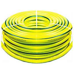 Тип поливочный. Длина 25 м. Диаметр 3/4 дюйм. Толщина стенки 1.9 мм. Материал ПВХ. Максимальное давление 9 бар. Количество слоев 3. Температура эксплуатации от 0 до +50 °С.