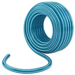 Длина 50 м. Диаметр 3/4 дюйм. Толщина стенки 1.9 мм. Материал ПВХ. Максимальное давление 9 бар. Количество слоев 3. Температура эксплуатации от 0 до +50 °С.