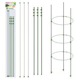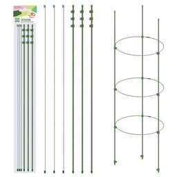 Опора используется для поддержки и фиксации в нужном положении стеблей и кроны растений. Кольцевая опора подойдет как для комнатных растений, так и для растений в саду. Опора устанавливается в цветочный горшок или открытый грунт. Опора состоит из трех колышков и трех прутиков, которые сворачиваются в кольца и фиксируются на колышках при помощи 9 зажимов. Кольца регулируются по ширине и высоте. Опора для цветов создает отличную поддержку для растений придавая им аккуратный, безупречный вид. Изготовлено из металла с порошковым покрытием, пластмассы (полипропилен). Размер: высота 60 см, максимальный диаметр колец 21,5 см.