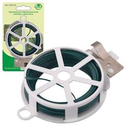 Прочная металлическая проволока с полимерным покрытием в диспенсере с резаком, применяется для подвязки растений, фиксации побегов в нужном положении, скрепления проводов, шлангов, завязывания пакетов и других хозяйственных нужд. Гибкая, прочная, влагостойкая. Для удобства хранения предусмотрено специальное отверстие в верхней части катушки. Изготовлено: проволока из металла с полимерным покрытием (полиэтилен), корпус из пластмассы (полипропилен), резак из металла. Размер: 12,5х8х2 см. Длина проволоки 20м.