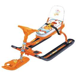 высота по спинке 450мм высота по сиденью 290мм сиденье мягкое размер сиденья 445х200мм грузоподъемность до 100кг буксировочный трос с автоматической намоткой усиленный тормоз эффективен на обледенелой поверхности складная съемная спинка комплект наклеек на снегокат в ПОДАРОК! масса 6,6кг в разобранном виде