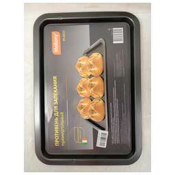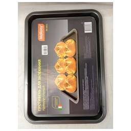 Товар в оригинальной упаковке. Повреждения упаковки: отсутствуют. Товар новый. Механические повреждения у товара: слабо заметные Замятия на корпусе. Восстановление работоспособности товара не требуется. Комплектация: полная. Документация: в комплекте. Размер: 46,5*32,7*2,5 см Толщина стали — 0,4 мм Материалы: углеродистая сталь с антипригарным покрытием Противень для выпекания * прост и удобен в использовании. * не изменяет цвет и вкус пищи * легко моется * антипригарное покрытие исключает необходимость использования большого количества масла * подходит для мини печей и духовок * используется для запекания пищи в фольге, на бумаге для выпекания, а так же непосредственно на противне (в данном случае рекомендуем использовать небольшое количество масла) Упаковка: цветной вкладыш + пакет
