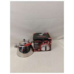 Товар в оригинальной упаковке. Повреждения упаковки: сильные повреждения. Товар новый. Механические повреждения у товара: заметные Сломан свисток, замятия на корпусе. Восстановление работоспособности товара не требуется. Комплектация: полная. Документация: в комплекте. Материал: нерж сталь 410, толщина 0,25 мм, полипропилен (ручка) диа дна 18,5 см, высота без ручки 10 см, однослойное дно, зеркальная полировка, объем 2,5 л, цветная коробка. Подходит для всех типов плит.