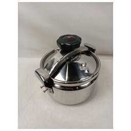 Товар в оригинальной упаковке. Повреждения упаковки: незначительные повреждения. Товар новый. Механические повреждения у товара: слабо заметные Царапины на корпусе. Восстановление работоспособности товара не требуется. Комплектация: не полная (Нет ручки и болтов). Документация: в комплекте. Объем 5,5л. Материал: алюминий, полированное покрытие. Клапан регулирующий давление. Возможность мыть в посудомоечной машине. Возможность использования на газовых плитах. Возможность использования на электрических плитах, кроме индукции и стеклокерамики. Комплектация: уплотнительное кольцо, струбцина+верхняя ручка. Особенности: предохранительный клапан. Цвет: серебристый металлик