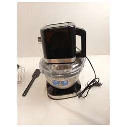 Товар в оригинальной упаковке. Повреждения упаковки: незначительные повреждения. Товар новый. Механические повреждения у товара: заметные Трещина на пластике корпуса . Восстановление работоспособности товара не требуется. Комплектация: полная. Документация: в комплекте. Кухонные комбайны. Мощность: 1000 вт, Число скоростей: 12, Венчик для взбивания: 1, Крюки для замешивания теста, Количество насадок: 3, Защитная крышка на чашу, Материал чаши: нержавеющая сталь, Объем чаши: 4 литра, Материал корпуса: пластик, Вес: 4,6 кг, Длина сетевого шнура: 120 см, Цвет: Черный/серебро