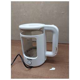 Товар в оригинальной упаковке. Повреждения упаковки: незначительные повреждения. Товар бывший в употреблении. Механические повреждения у товара: заметные Битая ручка . Восстановление работоспособности товара не требуется. Комплектация: не полная (Нет гар талона инструкции ). Документация: отсутствует. Объем чайника (Л): 1,5. Мощность (Вт): 1650-2000. Отключение при отсутствии воды. База с поворотным контактом. Шкала уровня воды: Да. Съемный фильтр. Цвет корпуса: белый. Материал корпуса: Закаленное стекло. LED-подсветка