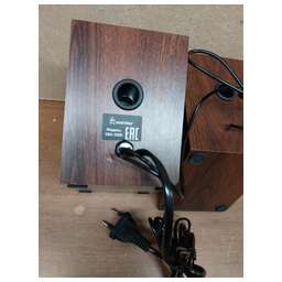 Товар в оригинальной упаковке. Повреждения упаковки: незначительные повреждения. Товар новый. Механические повреждения у товара: слабо заметные С тыльной стороны на одной колонки царапина . Восстановление работоспособности товара не требуется. Комплектация: полная. Документация: в комплекте. Архитектура 2.0 Макс.выходная мощность 16Вт Мощность каналов 2х8 Вт Интерфейс соединения Bluetooth/AUX Размер динамиков 2х76мм Диапазон воспроизводимых частот широкополосных динамиков 200 Гц - 18 кГц Питание 220В Материал корпуса дерево (ДВП) / металл / пластик
