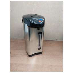 Товар в оригинальной упаковке. Повреждения упаковки: сильные повреждения. Товар новый. Механические повреждения у товара: заметные Вмятины на корпусе. Восстановление работоспособности товара не требуется. Комплектация: полная. Документация: отсутствует. Мощность 750Вт. Объем 5л. Способ подачи воды: автоматический (нажатием кружкой, нажатием кнопки). Скрытый нагреват. элемент. Нержавеющая стальная колба. Функция поддержания температуры, блокировки крышки. Быстрое кипячение воды.