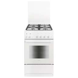 Габариты, ШхГхВ, см: 50x58.5x85; Цвет: белый; Дизайн: классический; Ширина, см: 50; Фасад: эмалированный; Объём духовки, л: 55; Варочная панель: газовая; Решетка варочной панели: чугунная эмалированная; Крышка стола: щиток, стеклянный; Управление варочной панели: кран; Присоединительная резьба газопровода: G 1/2; Номинальная потребляемая мощность электроэнергии, кВт: 1,84-2,02; Тип подключения: газоэлектрический; Количество газовых горелок варочной панели: 4; Газ-контроль горелок стола; Электророзжиг горелок стола: кнопка розжига на панели; Тип направляющих духового шкафа: Съемные проволочные; Количество стекол в дверце духового шкафа: 2; Тип духового шкафа: Электрический: Горелка гриль: электрическая; Ящик для посуды и принадлежностей: С дверцей откидной; Конвекция; Подсветка духовки: одинарная