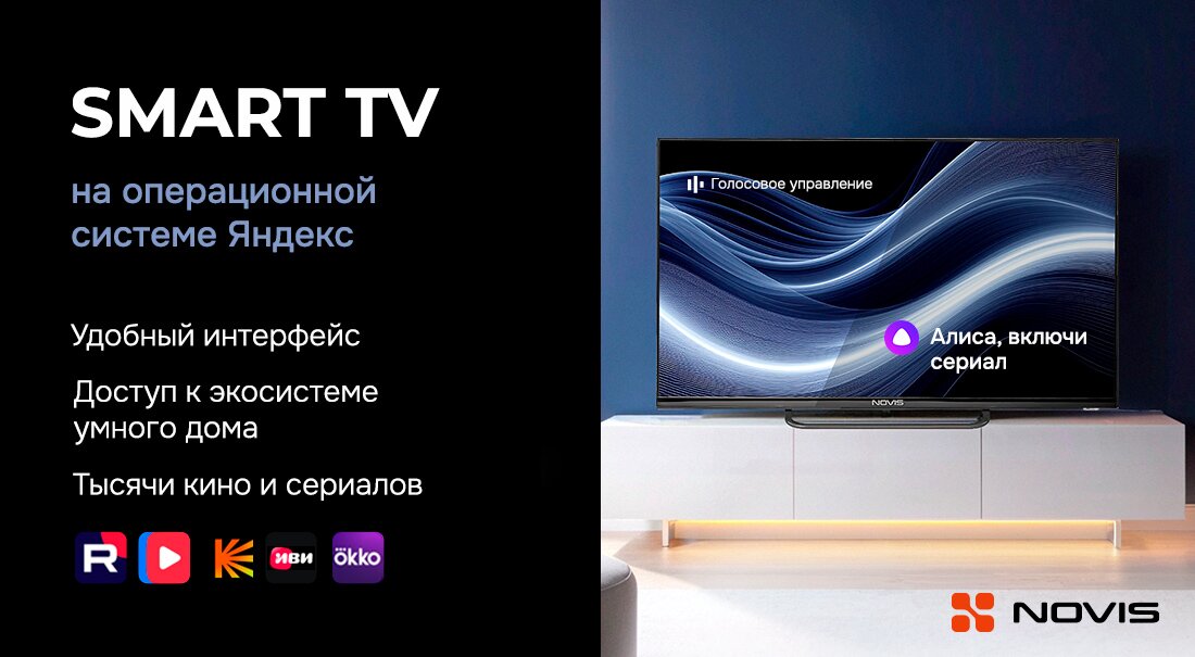 Телевизоры NOVIS созданы для комфорта всей семьи. Благодаря сбалансированному набору функций они одинаково удобны для просмотра фильмов в гостиной, сериалов в спальне или телепередач на кухне.