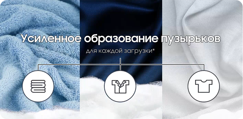 Обеспечьте чистоту своей одежды с помощью технологии Bubble Soak (Пропитывание пузырьками), которая способствует удалению даже застарелых пятен разного типа, включая пятна крови, вина, косметики и травы.