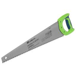 Ножовка по дереву Сибртех «Зубец» 23818 с полотном длиной 500 м, калеными зубьями с шагом 6,5 мм и 2D-заточкой, 2-компонентной рукояткой, используется для продольного и поперечного пиления древесины и ДСП. Рабочая кромка с 4 зубьями на дюйм обеспечивает быстрый рез. Зубья имеют 2D-заточку, благодаря чему ножовкой можно пилить в направлении как от себя, так и на себя. Возможна заточка режущей части. Ножовка применяется для выполнения плотницких работ, пригодится также и в быту.ПреимуществаПолотно изготовлено из легированной стали 65Mn, чем обусловлена его прочность и устойчивость к деформациям.Зубья ножовки закалены, что обеспечивает ей высокий ресурс работоспособности.Поверхность полотна покрыта лаком для защиты от коррозии.Рукоятка закреплена на полотне 3 винтами, поэтому не соскочит во время работы.Материал двухкомпонентной рукоятки — ударопрочный ABS-пластик, обеспечивающий надежность инструмента.Эргономичная рукоятка удобно лежит в руке, что повышает комфортность работы.