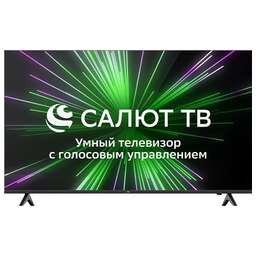 55", 139.7 cм, UHD(3840*2160), SmartTV (СалютТВ с сервисами Sber и голосовыми ассистентами, пульт с голосовым управлением), 250 cd/m2 ±10%, 5000:1, DVB-C/T/T2/S2, 3 HDMI, 2 USB, звук 2х8 Вт
