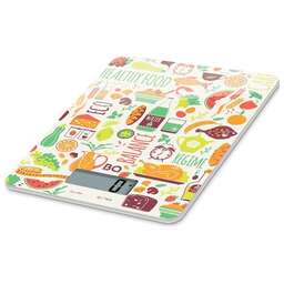 Весы кухонные, электронные. Максимальный вес: 5 кг, Предел взвешивания: 5 кг, Точность измерения: 1 грамм, Размер платформы: 20,0x18,5 см, Размер дисплея: 95x18 мм, Встроенные часы, Индикация заряда батареи, Индикация перегрузки, Индикация температуры, Тарокомпенсация, Последовательное взвешивание, Тип элементов питания: 1хCR2032 ( в комплекте), Автоматическое выключение, Материал корпуса: пластик, Материал чаши: стекло, Цвет: Принт ( Авокадо)