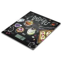 Весы кухонные. электронные, Максимальный вес 10 кг, Предел взвешивания 10 кг, Точность измерения 1 г, Размер платформы 20,0x18,5 см, Размер дисплея 58x26 мм, Индикация заряда батареи, Индикация перегрузки, Тарокомпенсация, Последовательное взвешивание, Тип элементов питания 1хCR2032 ( в комплекте), Автоматическое выключение, Материал чаши стекло, Крепление к стене, Цвет: Черный с принтом