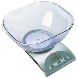 Электронные, предел взвешивания 5 кг, минимальный вес 10 г. Точность измерения +/- 1 г, материал платформы / чаши: пластик. ЖК дисплей.