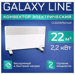 GALAXY LINE GL 8226 БЕЛЫЙ (1шт) Обогреватель конвекционный мощность 1200 Вт, 2 режима работы, регулируемый механический термостат, площадь обогрева 15м2, алюминиевый нагревательный Х-элемент, защита от перегрева, колеса для перемещения, настенное крепление в комплекте, возможность установки во влажном помещении