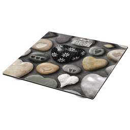 Весы напольные, электронные. Максимальная нагрузка до 180кг, Точность измерения - 50 гр., Платформа — закаленное стекло, Белая подсветка дисплея, Подсветка дисплея, Размер дисплея 75х29,5 мм., Авто обнуление и авто отключение, Автоматическое включение/включение, Единицы измерения - кг/фт, Отображение комнатное температуры, элементы питания 2хAAA, Габариты: 30х30 см. цвет — Принт (Камни)