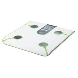 Весы напольные, диагностические. Точность измерения 0,1 гр., Максимальная нагрузка до 180 кг., Единицы измерения: кг/фунты, Автоматическое включение/Автоматическое выключение Выбор роста/пола/возраста, Материал платформы - пластик, Определение доли воды, доли жировой ткани, доли костной ткани, доли мышечной ткани. Память 10 пользователей. Расчет калорий, Тип элементов питания CR-2032. Цвет: Белый/зеленый