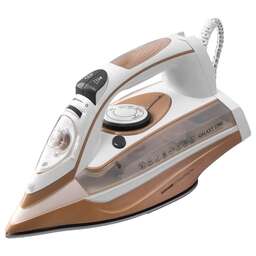Утюг 2400 Вт, керамическое покрытие подошвы, уплотнитель крышки резервуара, функции: автоотключение, самоочистка, антикапля, антинакипь, индикатор автоотключения, указатель максимального уровня воды, индикатор нагрева, вертикальное отпаривание/ паровой удар, функция увлажнения, защита от перегрева, емкость для воды 500мл, мерный стакан, питание 220-240В, 50Гц