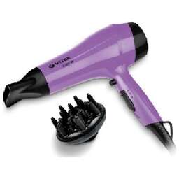 Фен. Мощность: 2100 вт, Турмалиновое покрытие, Количество режимов: 2 режима скорости/температуры воздушного потока, Подача холодного воздуха, Насадка-концентратор, Защита от перегрева, Петля для подвешивания, Длина сетевого шнура: 1,8 метра, Ионизация (Турмалиновая ионизация), Цвет: Сиреневый металлик