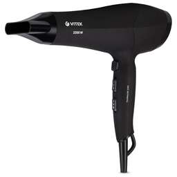 Фен. Мощность: 2200 вт, Количество режимов: 3 режима температуры/ 2 скорости воздушного потока, Подача холодного воздуха, Насадка-концентратор, Защита от перегрева, Петля для подвешивания, Длина сетевого шнура: 1,8 метра, Съемный фильтр, Вращение шнура, Ионизация (Турмалиновая ионизация), Противоскользящее покрытие, Цвет: Черный.