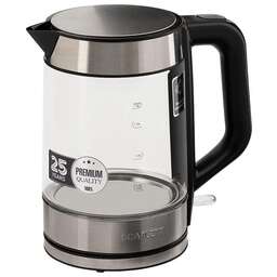 Электрический чайник,1800Вт, 1.8 Л, традиционное открытие крышки, металлическая декорация сталь. Мощность, Вт: 1800 Объем, л: 1.7 Способ открывания крышки: Традиционная система открывания крышки Индикатор уровня воды: Шкала Материал корпуса: Стекло Вид нагревательного элемента: Закрытый Внутренняя подсветка: Да Фильтр: Нет Вид/марка стекла: CRYSTAL PRO Система многоуровневой безопасности «Safe Work»: Да Цвет: Сталь