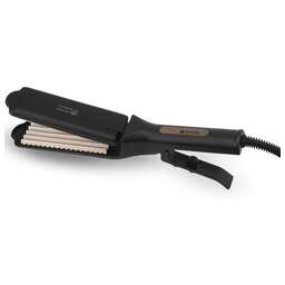 Электрощипцы-гофре. Максимальная температура нагрева 225 °C, Мощность 45 вт, Диаметр щипцов для завивки - 45 мм, Керамическое покрытие, Индикация готовности к работе, Ширина пластин для гофре - 45 мм, Турмалиновое покрытие насадок, Безопасная подставка, Безопасный резиновый шнур, Длина сетевого шнура - 1,8 метра, Цвет: Черный