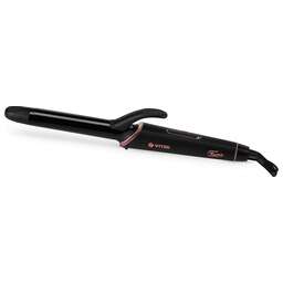 Электрощипцы. Мощность 45 Вт. Максимальная температура нагрева 210 °C, Количество режимов - 19, Технология PTC Heating, Диаметр щипцов для завивки - 25 мм, LED дисплей, Керамическое покрытие, Индикация готовности к работе, Индикация включения, Турмалиновое покрытие насадок, Регулировка температуры (120-210°C), Вращение шнура, Время нагрева 30 секунд, Безопасная подставка, Длина шнура - 1,8 метра, Петля для подвешивания, Ненагреваемый наконечник. Цвет: черный