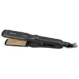 Мультистайлер. Максимальная температура нагрева 200 °C, Мощность 25 Вт, Технология PTC Heating, Керамическое покрытие, Индикация включения, Вращение шнура, Петля для подвешивания, Возможность выпрямления волос, Защита от перегрева, Ненагреваемый наконечник. Пластины для крупного гофре, Пластины для мелкого гофре, Пластины для 3D-локонов, Пластины для выпрямления. Длина сетевого шнура - 1,8 метра. Цвет: Черный