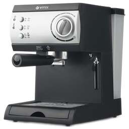 1513(BK) Кофеварка VITEK Мощность 1350 Вт.Давление 15 бар.Съемный резервуар для воды объемом 1,25 л. кофемашина-эспрессо полуавтоматическая для молотого кофе приготовление капучино одновременная раздача на 2 чашки корпус из пластика