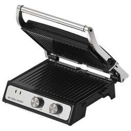 3 в 1: гриль, духовка, барбекю; мощность: 2200 Вт, тип управления: механическое, нагревательный элемент: нержавеющая сталь, регулировка температуры каждой панели, диапазон температур нагрева: 40-235 °С, материал корпуса: металл, бакелит, материал панелей: металл, антипригарное Non-Stick PRO, размер рабочей поверхности: 290 x 240 мм, количество панелей: 2, регулировка высоты, максимальный угол открытия крышки: 180°, индикатор нагрева. индикатор питания, съемный поддон для сбора масла/жира, длина шнура: 0.7 м, напряжение: 220-240 В, 50-60 Гц, защита от поражения электротоком: класс I