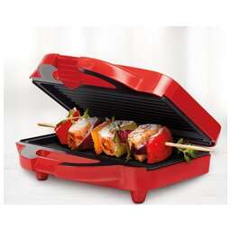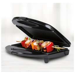 Мощность: 1000Вт / Антипригарное покрытие /Индикаторы работы и нагрева / Термоизолированная ручка для безопасного использования /Крышка прибора открывается на 180 градусов увеличивая рабочую поверхность в 2 раза для приготовления блюд барбекю /Регулировка высоты верхней пластины в зависимостиот толщины продукта