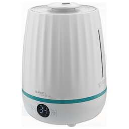 Ультразвуковой увлажнитель воздуха белый Объем, л: 4 Управление: Сенсорное Площадь помещения, м2: 25 Расход воды максимальный, мл/ч: 300 Регулировка интенсивности увлажнения: Да Автоматическое отключение при отсутствии воды: Да Ароматизатор: Да Гигростат: Да Верхний залив воды: Да Цвет: Белый