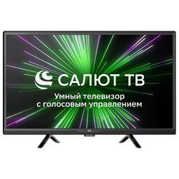 24", 1366х768,SmartTV (СалютТВ с сервисами Sber и голосовыми ассистентами, пульт с голосовым управлением), 170 cd/m2, 3000:1, DVB-C/T/T2/S2, 2 HDMI, 2 USB, звук 2x2 Вт