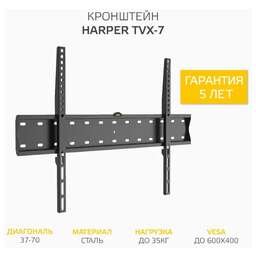Назначение: для LCD- и LED-телевизоров. Совместимость с диагональю ТВ: 37, 40, 42, 43, 50, 55, 60, 65, 70. Тип кронштейна: фиксированный. Совместимость: поддерживает ТВ с диагональю 37-70. Максимальный вес ТВ: 35 кг. Крепление стандарта Vesa: до 600х400. Типы VESA: 200x200, 300x300, 400x200, 400x400, 600x400. Угол наклона: 0°. Материал корпуса: сталь. Минимальное расстояние от стены: 30 мм. Максимальное расстояние от стены: 30 мм. Комплектация: Кронштейн, вертикальные опоры, крепежные детали, инструкция, гарантийный талон. Цвет: черный. Размеры (ШхВхГ): 643x425x30 мм. Вес: 1.26 кг.