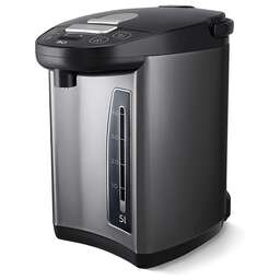 Термопот, Емкость 5.0 л, Мощность 900 Вт, Мощность в режиме поддержания температуры 35 Вт, Индикатор уровня воды, 2 способа подачи воды - нажатием чашкой на клапан, электрическая помпа, Поддержание температуры, Режим повторного кипячения, Защита от включения без воды, Защита от перегрева, Внутренняя колба из нержавеющей стали AISI 304, Съемный шнур, Ручка для переноски, Вращающийся корпус на 360°, Напряжение сети 220-240 В, 50/60 Гц