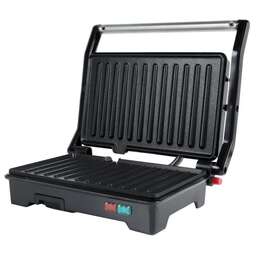 Современный электрогриль мощностью 750 Вт идеально подходит для приготовления разнообразных блюд - от сочного мяса и птицы до полезных овощей и аппетитных бургеров. Устройство с черным пластиковым корпусом и крышкой из нержавеющей стали оснащено тефлоновой рабочей поверхностью с антипригарным покрытием, обеспечивающей легкое приготовление без пригорания и простую очистку. Прижимная конструкция гарантирует равномерное прожаривание продуктов с обеих сторон, а удобное открытие на 180 градусов делает процесс приготовления максимально комфортным. Практичные особенности включают: предварительный нагрев, не нагревающуюся ручку для безопасного использования, антискользящие ножки для устойчивости, поддон для сбора жира, а также индикаторы питания и готовности для контроля работы. Кабель длиной 80 см обеспечивает удобное размещение на кухне.